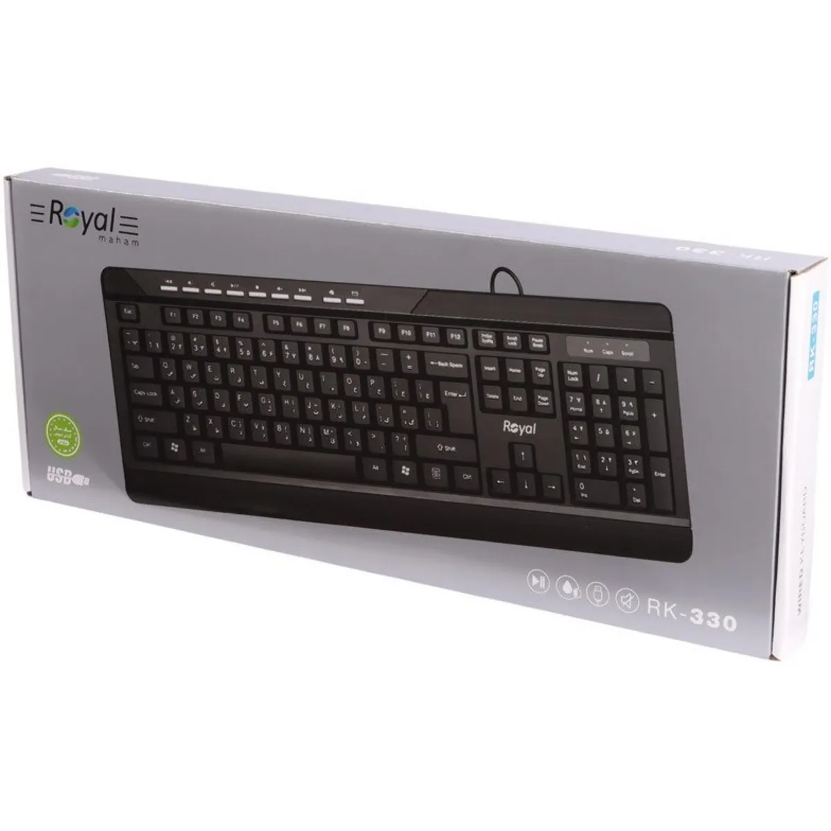 کیبورد Royal RK330 یک کیبورد سیمی ساده، با طراحی مقاوم و پاسخگویی دقیق است که برای استفاده اداری، تایپ طولانی و کارهای روزمره گزینهای عالی و مقرون به صرفه محسوب میشود.
