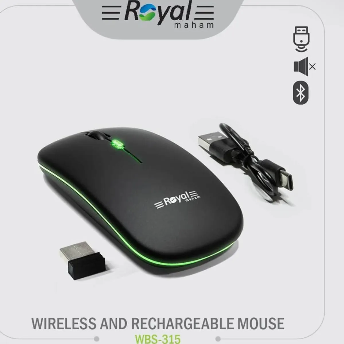 ماوس Royal WBS-315 یک مدل بیسیم شارژی با دو حالت اتصال (بلوتوث 5٫0 و 2.4 گیگاهرتز)، طراحی سایلنت کلیدها، دقت قابل تنظیم و نورپردازی ساده است که برای پذیرش کاربری روزمره، اداری و استفاده چند دستگاهی بسیار مناسب است.
